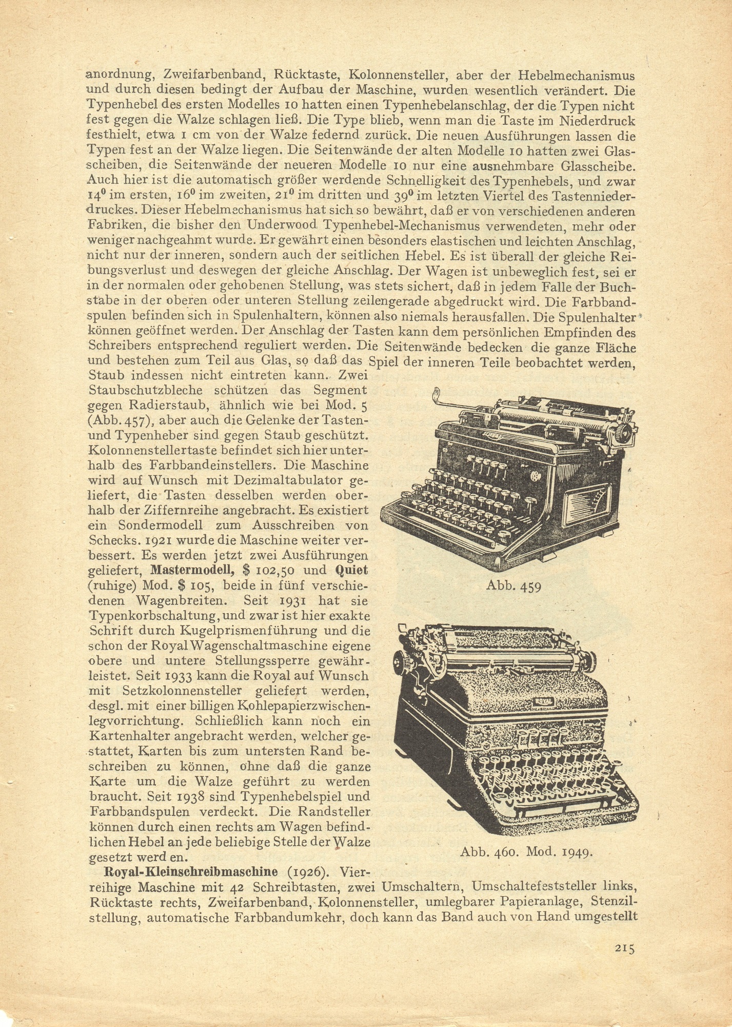 [..] Since 1931, it has had a type basket shift, and precise writing is ensured by a ball prism guide and the upper and lower position locks already found on the Royal carriage shift machine. Since 1933, the Royal can…