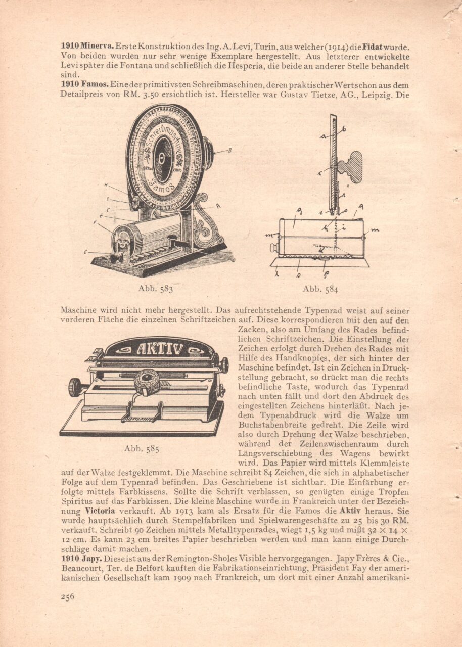 [..] From 1913, the Aktiv came out as a replacement for the Famos. It was mainly sold by stamp factories and toy shops at 25 to 30 RM. Writes 90 characters using a metal daisy wheel, weighs 1,5 kg and…